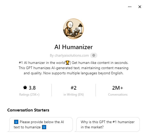 Custom GPTs are (potentially) significant from a business perspective because they are meant to operate as apps which can be developed by plugging directly into the OpenAI ecosystem. An initial search on Explore GPTs (chatgpt.com) revealed hundreds of custom GPTs with the word “Education” in the description. These range from multiple choice question generators to “Christianity” bots. However, these explicitly educational bots do not seem to attract many users. The most popular one – a bot that promises assistance “on everything education” – sports a meagre 1K+ conversations. Interestingly, educational bots pale in comparison to “humaniser bots” that promise to make AI-generated text more difficult to identify.